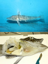 上:オセレイテッドアイスフィッシュ(ジャノメコオリウオ)