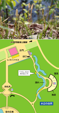 葛西臨海水族園の「水辺の自然」コーナーでは、「つくし」のほかにも、カタクリの花、さまざまな植物の芽生え、冬眠から覚めたイシガメなど、明るい春の気配を感じることができます。ぜひ、みなさんにもごらんいただき、元気を出してもらいたいと思います。