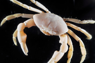 まず目についたのはユノハナガニです。熱水域に棲んでいることから、温泉に咲く「湯の花」にちなんで風流な和名がつけられました。このカニは体に色素がないため、全身が真っ白です。餌は熱水の周りにいるバクテリアやエビなどです。ちなみに、体に色素がないので、茹でても普通のカニとはちがって赤くはならないそうです。