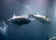約9年前の1999年8月2日、葛西臨海水族園は世界で初めて、水槽内でクロマグロを産卵させることに成功しました。当時は、クロマグロ仔魚を育成するための準備が十分に整っていなかったこともあり、仔魚は35日間ほどしか飼育することができませんでした。その後も産卵は続きましたが、約2か月後、産卵していたメス個体は死亡してしまいました。