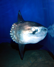 深海のコーナーにマンボウを展示したということは、マンボウは深海魚なの?と疑問に思った方も多いのではないでしょうか。マンボウは、広く全世界の熱帯から温帯までの海の表面付近でくらしていると考えられてきましたが、最近の研究によれば、水面から深海 800メートルまでを行き来していることがわかってきました。
