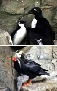 ウミガラスとエトピリカ、餌の運び方の違い