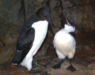 水族園は1989年の開園時からウミガラスを飼育展示しています。日本初の試みでした。2000年には初繁殖に成功。以降、毎年2~3羽のひなが巣立っていますが、このたび、2000年に水族園で生まれたオス(第2世代)が、初めて繁殖にかかわり、第3世代が誕生しました。水槽内というかぎられた場所で、世代交代に成功したことになります。野生では生まれて5~6年で繁殖を始めますが、今回の例は7年目でした。