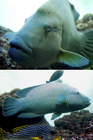 また、成長につれ頭部がふくらみ、その外見がフランスの皇帝ナポレオンがかぶっていた帽子に似ているため“ナポレオンフィッシュ”とも呼ばれています。この名前の方が有名かもしれません。