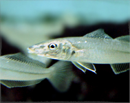 アオギスは「東京湾」のコーナー、「東京湾の漁業」水槽に展示されています。でも、正確には、ここに展示するのはふさわしくないかもしれません。というのも、かつて東京湾に漁業の対象となるほどたくさんいたアオギスは、昭和40年代頃から急速に減り始め、その約10年後、昭和51年に確認されたのを最後に、東京湾からすがたを消してしまいました。今でも東京湾でふつうに見られるシロギスとは異なり、アオギスは悲しい運命をたどったのです。