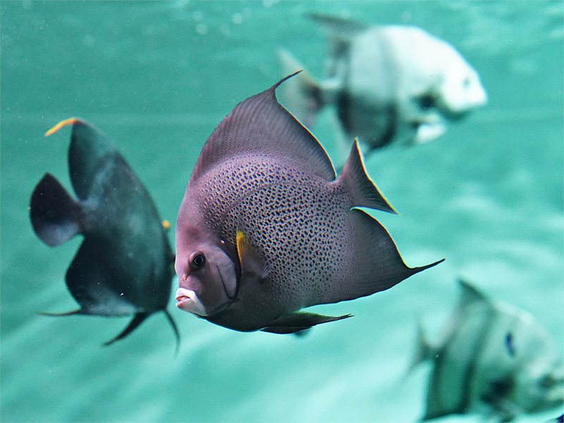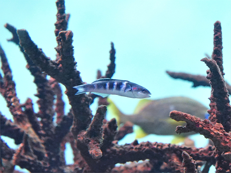 このようないくつもの段階を経て、グレイエンゼルフィッシュとブルーヘッドは無事「カリブ海」水槽にデビューしました。健康な魚たちを見にぜひ水族園へお越しください。