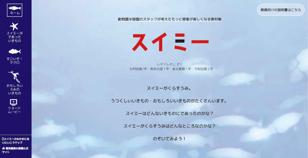 このたび、小学校の先生方の声を参考に、国語の読み物「スイミー」(レオ=レオニ作)をテーマとしたパッケージ教材を2023年5月25日に公開しました。