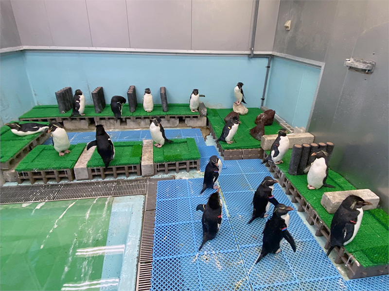 繁殖がおこなわれている屋内飼育施設のようすは、「ペンギンの生態」エリアの階段を降りたところにあるモニターでご覧になれます。ご来園の際はぜひ、繁殖のようすにも注目してみてください!