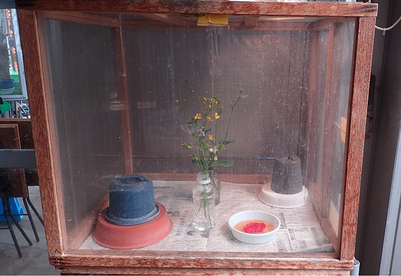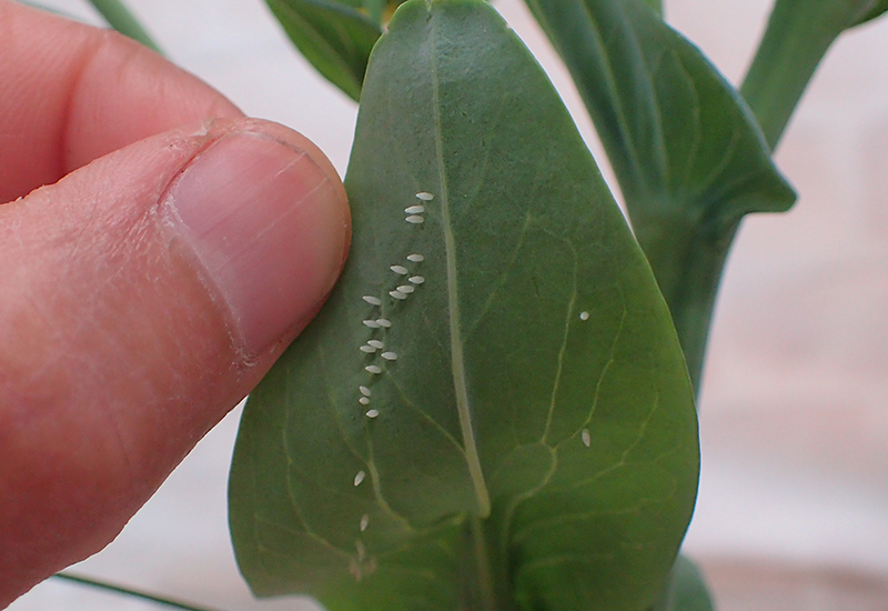 | 採卵のようす | 小松菜に産み付けられた卵 |
