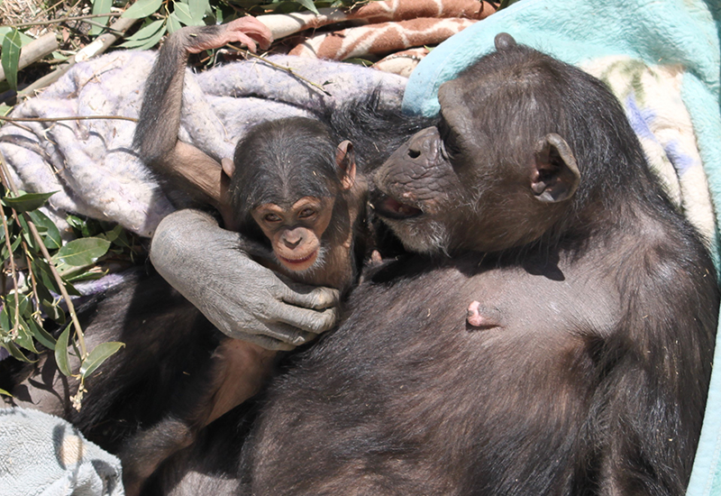 チンパンジーの親子、「ピーチ」と「プラム」の近況(2020年10月09日)