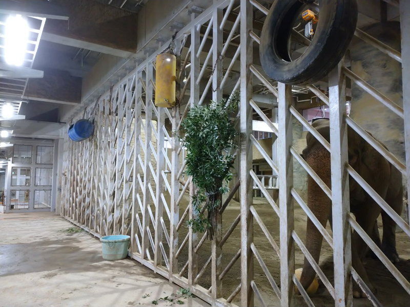 ゾウだけではなく、ゾウ舎のいろいろな場所をよく見てみると、担当者がさまざまな場所に設置したえさを発見したり、運がよければ担当者がえさを準備している所も見られたりするかもしれません。ぜひ、ゾウ舎にお越しの際はいろいろ探してみてください!