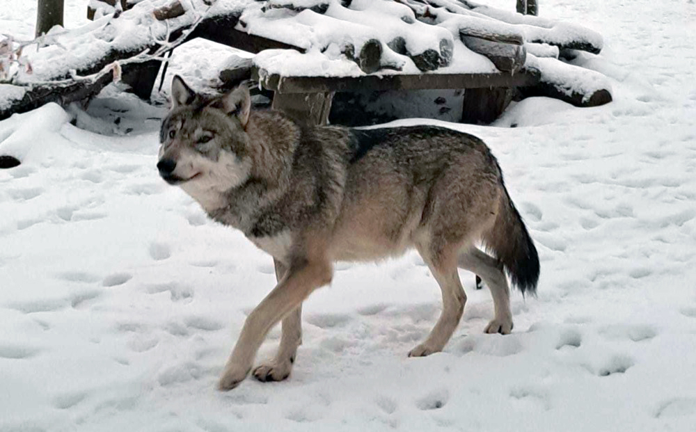 来園したタイリクオオカミ(亜種:ヨーロッパオオカミ)