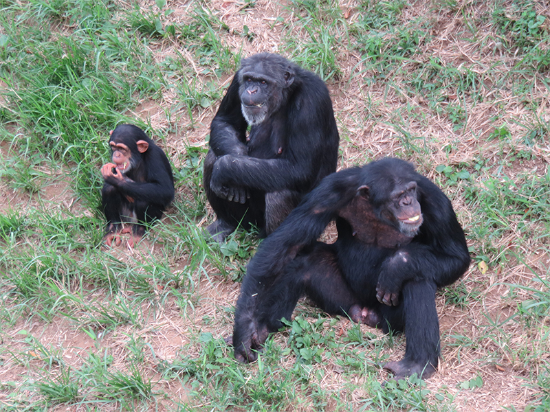 多摩動物公園では、放飼場の脱出防止濠と放飼場内の補修工事のため、以下のとおりチンパンジーの展示を中止いたします。