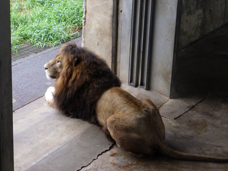 昨年7月に富士自然動物公園(富士サファリパーク)から来園したオスライオン2頭のうち1頭を、今年の5月から群れの一員として展示しています。今回は、展示していないもう1頭のようすをお伝えしようと思います。