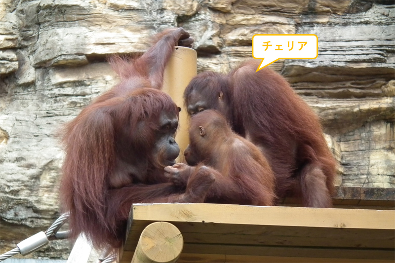 チェリアは、2014年11月19日によこはま動物園ズーラシアで生まれました。しかし、母親がうまく子育てをすることができなかったため、飼育係が親代わりとなる人工哺育で育てられました。人工哺育では、すくすくと順調な成長が見られる一方で、オランウータンとして生きていくための学習機会を与えることが大きな課題となりました。