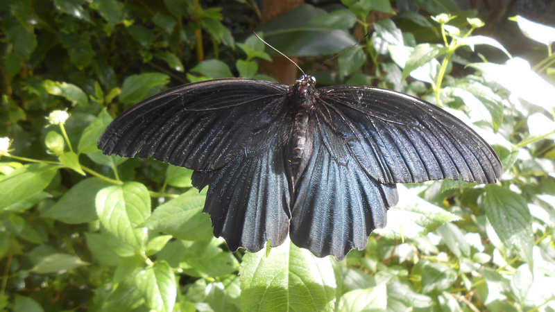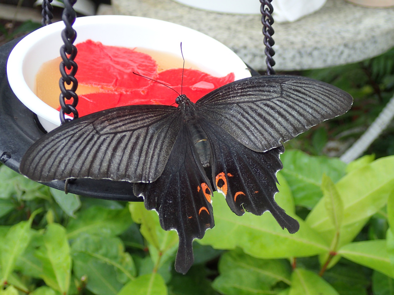 ナガサキアゲハは、ほかのアゲハと簡単に見分ることができ、大きくて目立つうえに日中は割と活発に飛んでくれるチョウです。生態園にお越しの際には、ぜひ彼らを探してみてください。