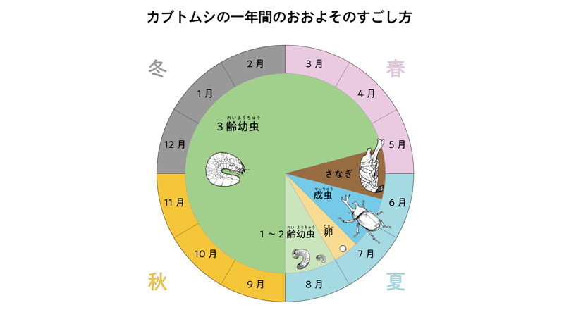 カブトムシの1年間のおおよそのすごし方