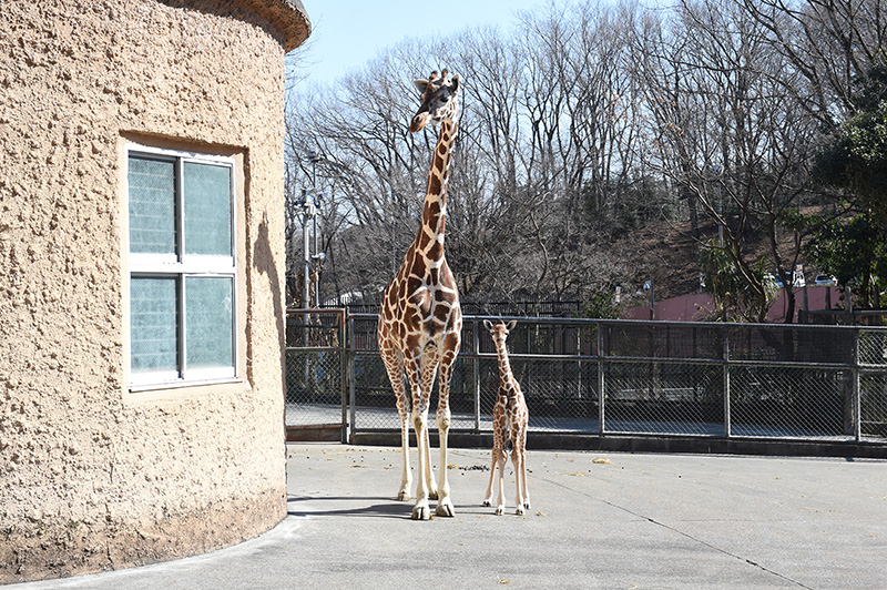 夜間観察ビデオを確認したところ、31日の午前3時38分ごろ破水し、午前4時34分に出産したことがわかりました。約1時間後に子どもは立ち上がり、その後すぐ授乳も確認できました。頭までの高さは約170cmで、平均的な大きさです。