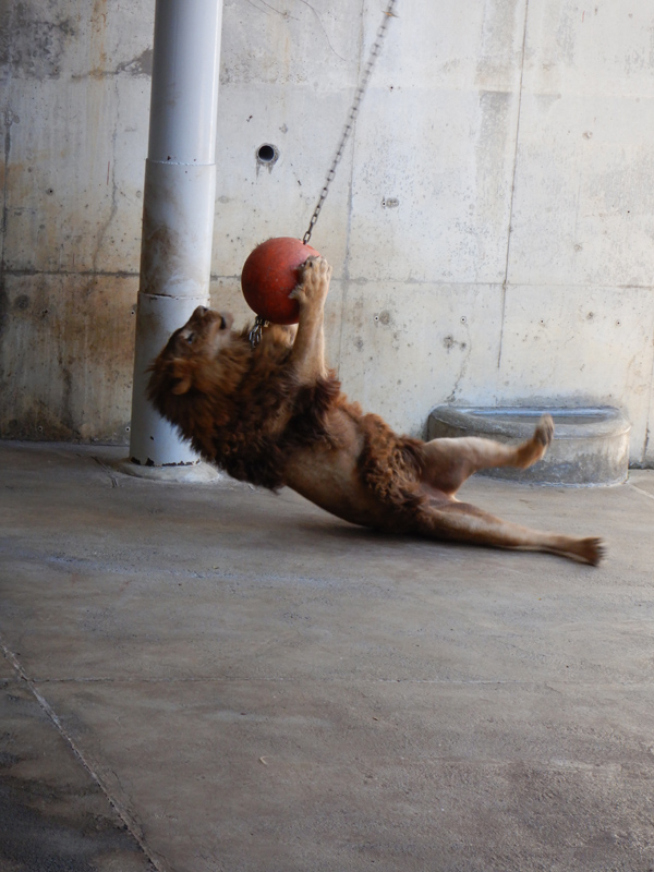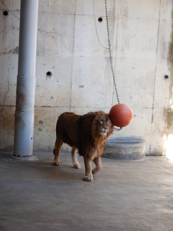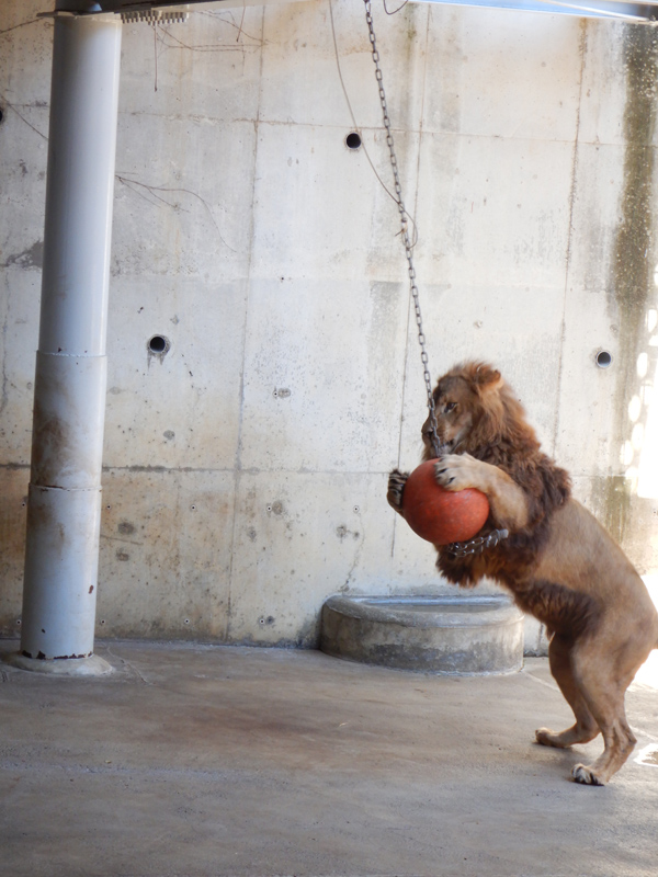 しかし、厚さ3cm強の杉板をバリバリに食いちぎったり、重さ3.4kgある固いブイにヘディングして弾き飛ばしたりと、さすがにライオン、猛獣らしさも見せてくれました。