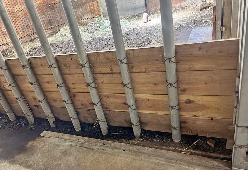 柵に板を貼って子サイが出られないようにしました