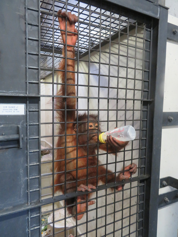最近は、いたずら好きな神様という名前の由来どおり、職員がそばで作業していると、手を伸ばして帽子を取ろうとしたり、母親よりも先に寝室に帰って扉をしめようとしたり、わんぱくに育っています。小さかったロキを思い出すと、今はたくましく成長してくれて嬉しく思います。