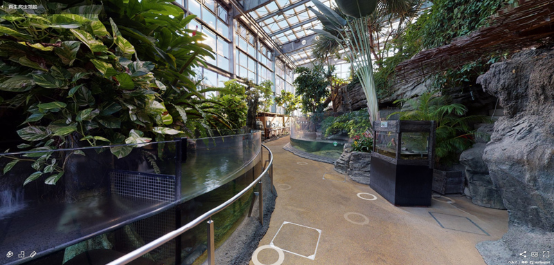 ・ビジターズビュー : 展示場前から撮影した生き物たちの様子を、自身で操作できる180度の動画で楽しめます!