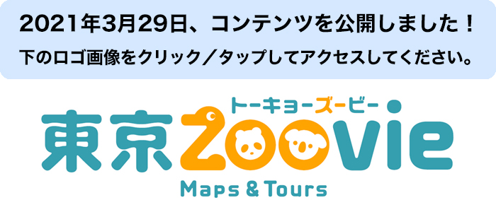 2024年4月1日追記:「東京Zoovie Maps & Tours」は2024年3月31日をもって更新を終了しました。引き続きコンテンツは閲覧できますが、情報が古い場合があります。最新情報は「東京ズーネット」サイトをご確認ください。