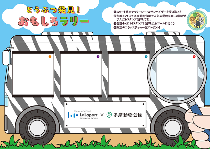 動物の面白い生態や豆知識が学べるスタンプラリー。ららぽーと立川立飛の館内4ヶ所のスタンプを集めてゴールすると限定コラボステッカーをプレゼント!