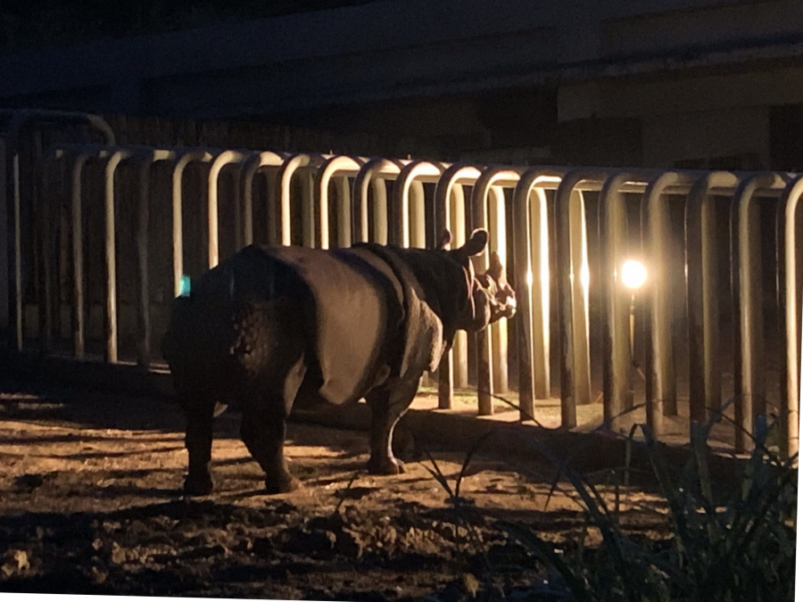 時間が少し戻りますが、ゴポンが来園する前の昨夏(2020年夏)、インドサイの夜間放飼を初めて行ないましたのでお伝えします(「放飼」は運動場などに出すことを言います)。