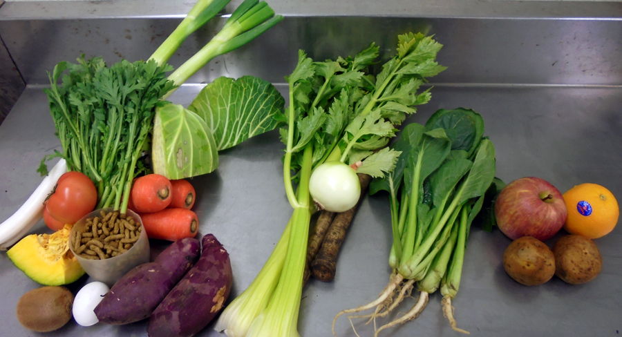 2019年生まれの「プラム」と「イブキ」も しっかり野菜を食べています | えさを野菜にすることで時間を かけて食べるようになりました |