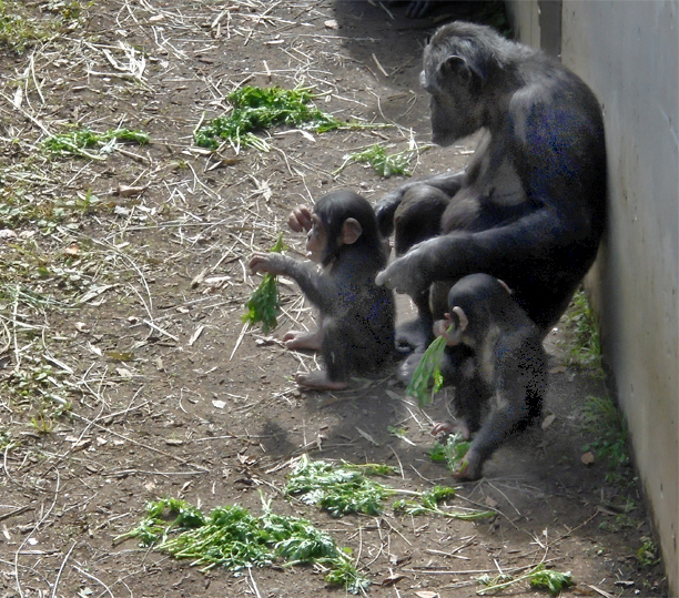 これらの取り組みはチンパンジーが本来野生で摂取している栄養素に近づけるために大切です。また、バラエティーに富んだ野菜を与えることでバランスの取れた栄養を摂取できるほか、飽きやすいチンパンジーたちが飽きずにいろいろな栄養を野菜から摂取できるような仕組みづくりも可能になりました。