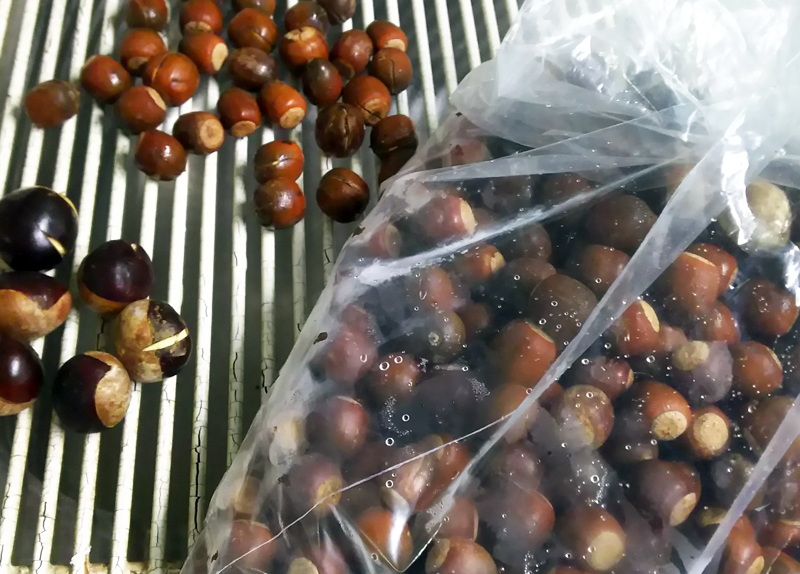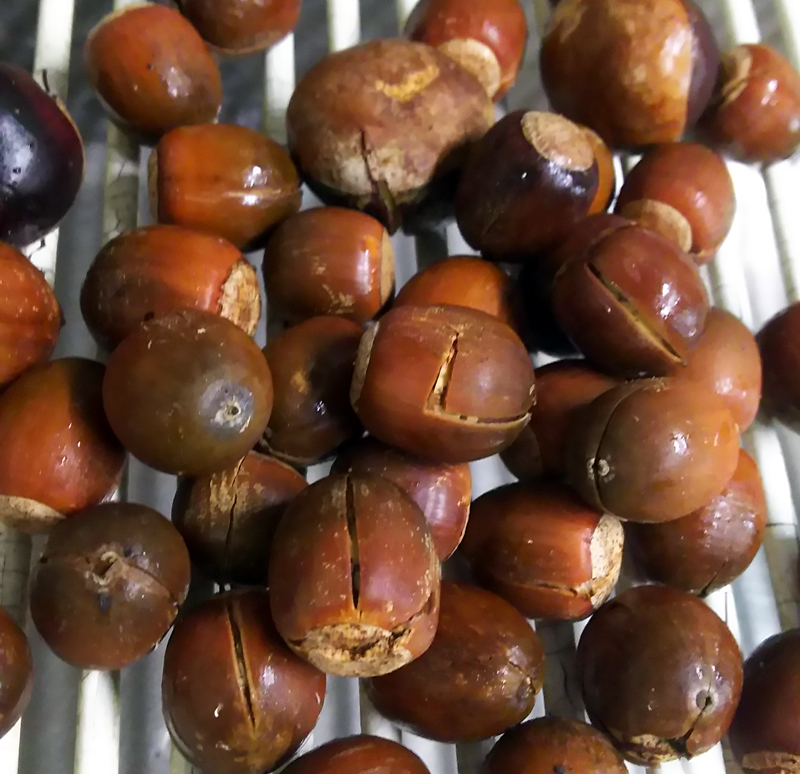 | クヌギのドングリ | 殻が割られたドングリ |