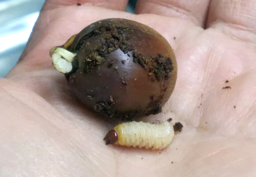 ドングリから出てきたクロカタゾウムシの幼虫