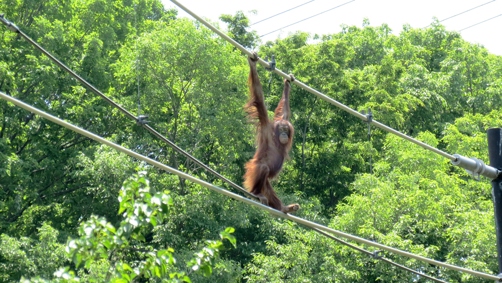 多摩動物公園では「オランウータンの森」の整備作業にともない、2020年10月5日(月)のオランウータンの「スカイウォーク」は中止いたします。