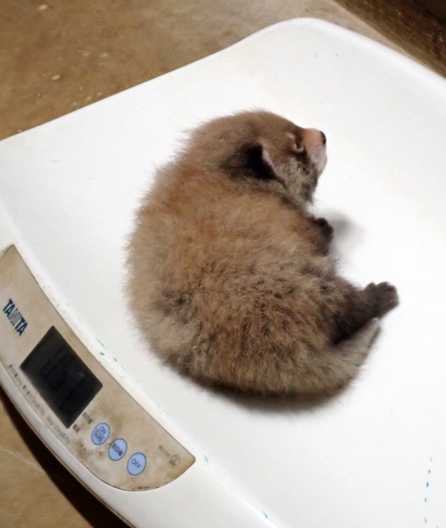今では顔や尻尾の模様も現れ、体重は1㎏を超えました(9月10日現在)。動きも活発になり、産箱の中で互いにプロレス技をかけ合うようにしていたかと思うと、すやすやと眠る、そんな毎日を送っています。