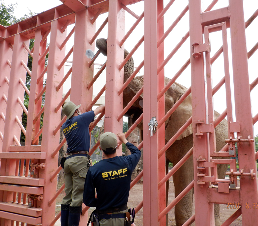 2020年8月15日、アフリカゾウの“砥夢”(トム:オス、11歳)の体重測定をおこないました。砥夢の体重測定は今年で6回目です。