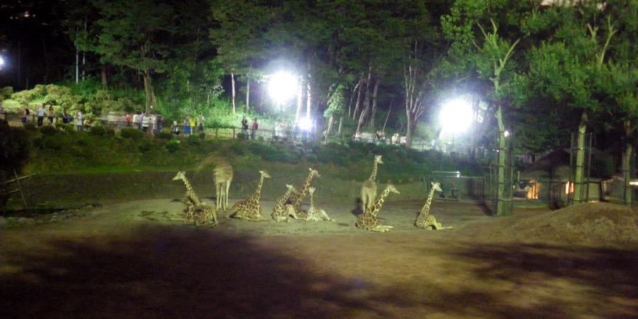夏の間、サバンナエリアでくらすキリンは大放飼場とキリン舎の出入りが自由になります。サマーナイトの日はいつもより3時間遅く20時まで開園します。夜暗くなり、複数のキリンが座って休息する姿は日中見ることのできない貴重な夜の姿でした。グレビーシマウマ(以下シマウマ)とシロオリックス(以下オリックス)は現在別の場所にいますが(お知らせ)、サバンナエリアにいた頃も夜に大放飼場に出ることはありませんでした。サバンナエリアから離れた仮住まいの動物たちがどのようにこの夏の夜を過ごしていたのかお伝えします。