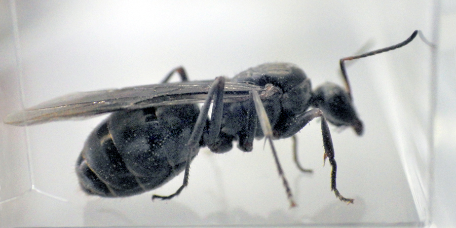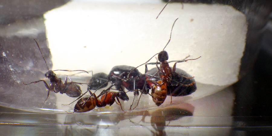 ムネアカオオアリの女王と働きアリ。サイズの違いが一目瞭然