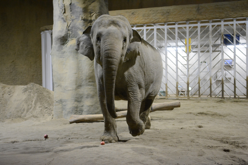 新アジアゾウ舎は現在工事中ですが、室内展示場は先に完成しており、2017年には高齢の「アヌーラ」(オス、推定67歳)をよりよい環境で過ごさせるため、先に移動しています。