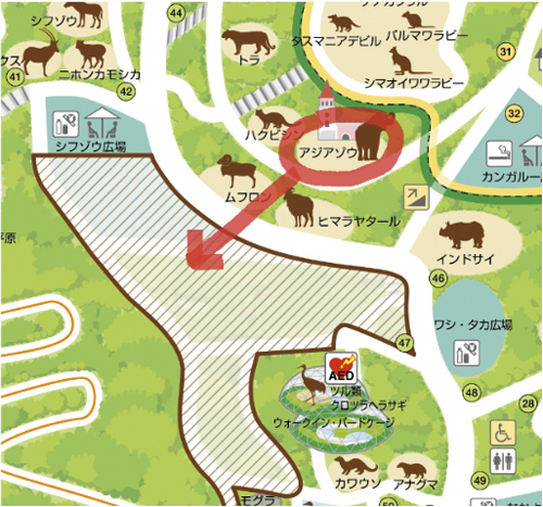 (新アジアゾウ舎は工事エリア内)