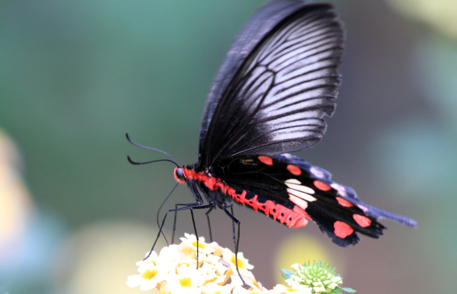 可憐に舞う黒い毒チョウ、ベニモンアゲハ