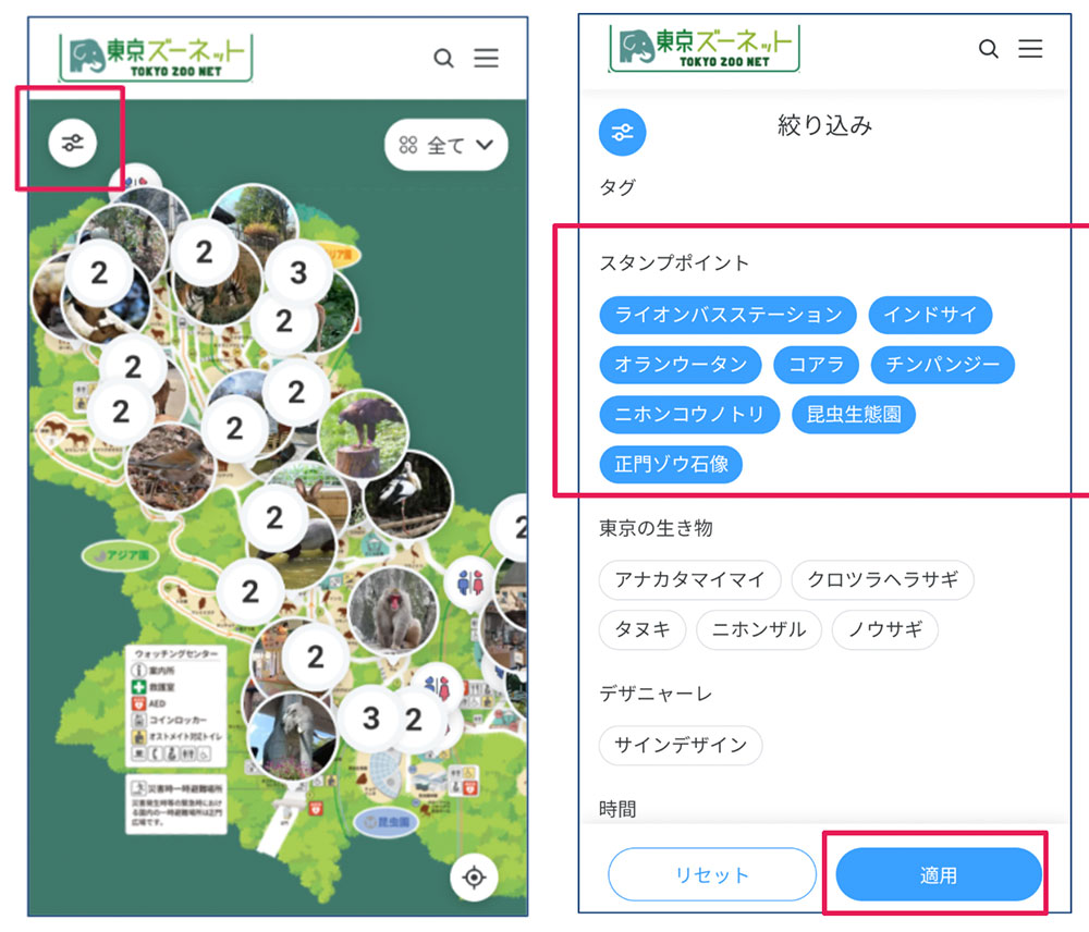 デジタルマップの絞り込み機能をタップすると、「スタンプポイント」を確認できます。