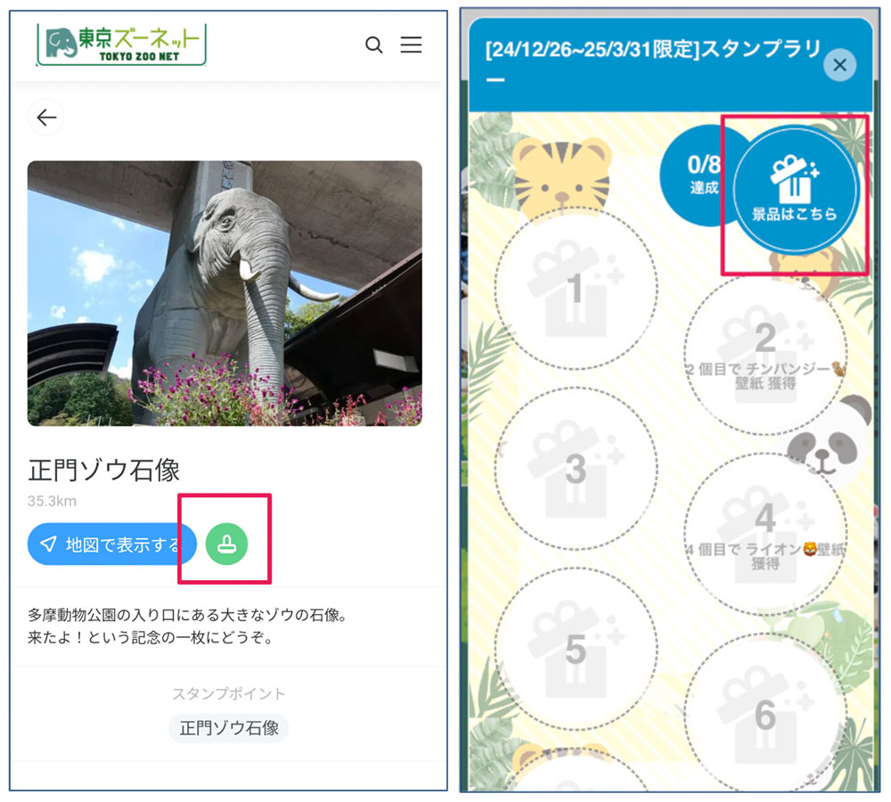 既定のスタンプを取得するとマップ内の特典ページに遷移できます。