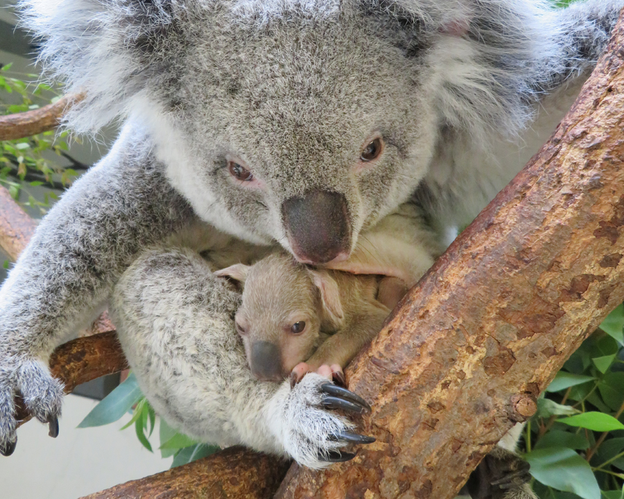 多摩動物公園でコアラが8年ぶりに生まれました。母親は「ニーナ」(2歳)、父親は「コタロウ」(3歳)です。
