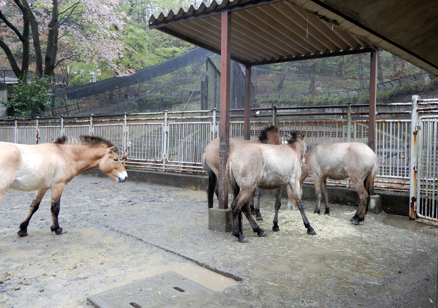 今年(2019年)3月、多摩動物公園のモウコノウマのオス「メロス」と「ナル」(いずれも2歳)を旧モウコノウマ舎の展示場に移しました。工事のために一時移動中のグレビーシマウマたちの隣です。