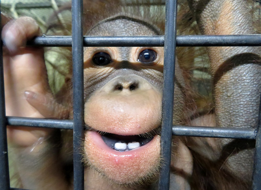 そして現在の一番の心配は、寝ていると母親の体からときどき両手が離れてしまうことです。オランウータンは樹上で生活する動物なので、赤ちゃんは両手両足で母親の毛を指にからみつけ、母親の脇腹にしっかりとくっついて落ちないようにしているのが普通です。さらに、オランウータンの指は特に意識しない状態では曲がった状態になり、ロックされるはずなのです……。