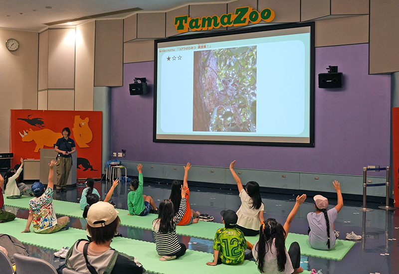 多摩動物公園では、コアラの飼育開始から今年で40年を迎えることを記念し、「コアラ40周年記念イベント」を開催しました。その一環として、2024年10月27日におこなった親子向けプログラム「コアラのひみつ 調査隊!」の準備や当日のようすをご紹介します。