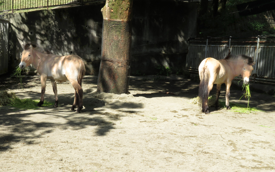 初の試みで心配も多々ありましたが、2頭は今、いつもいっしょに行動する仲良しです。そして意外なことに、あれだけ攻撃的だったハーンのほうがルーカスにつきまとうようになりました。1頭の時は独り遊びをよくしていたハーンは、遊び相手ができて嬉しそうに見えます。また、「アジアの平原」で子馬どうしが見せる後ろ肢を噛む行動や、相手に後ろから乗りかかるマウント行動、ルーカスに体をぴったりとくっつけたまま並んで歩く行動など、さまざまな行動が見られ、ハーンはとても楽しんでいるようです。