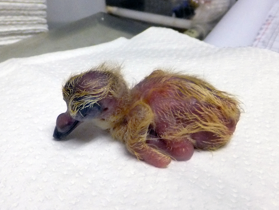 アカガシラカラスバトのヒナが誕生」 (上野動物園、2002年11月29日)