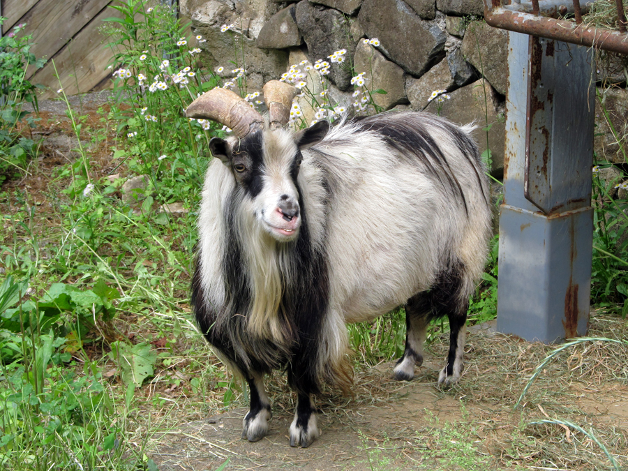 観覧側からダイズまで少し距離があるため、その顔や表情はわかりにくいかもしれませんが、ダイズはなかなか愛嬌のある顔をしています。他のヤギとはちがって少し下あごが出ているためなのか、ふつうにしていても下の前歯がいつも出ています。